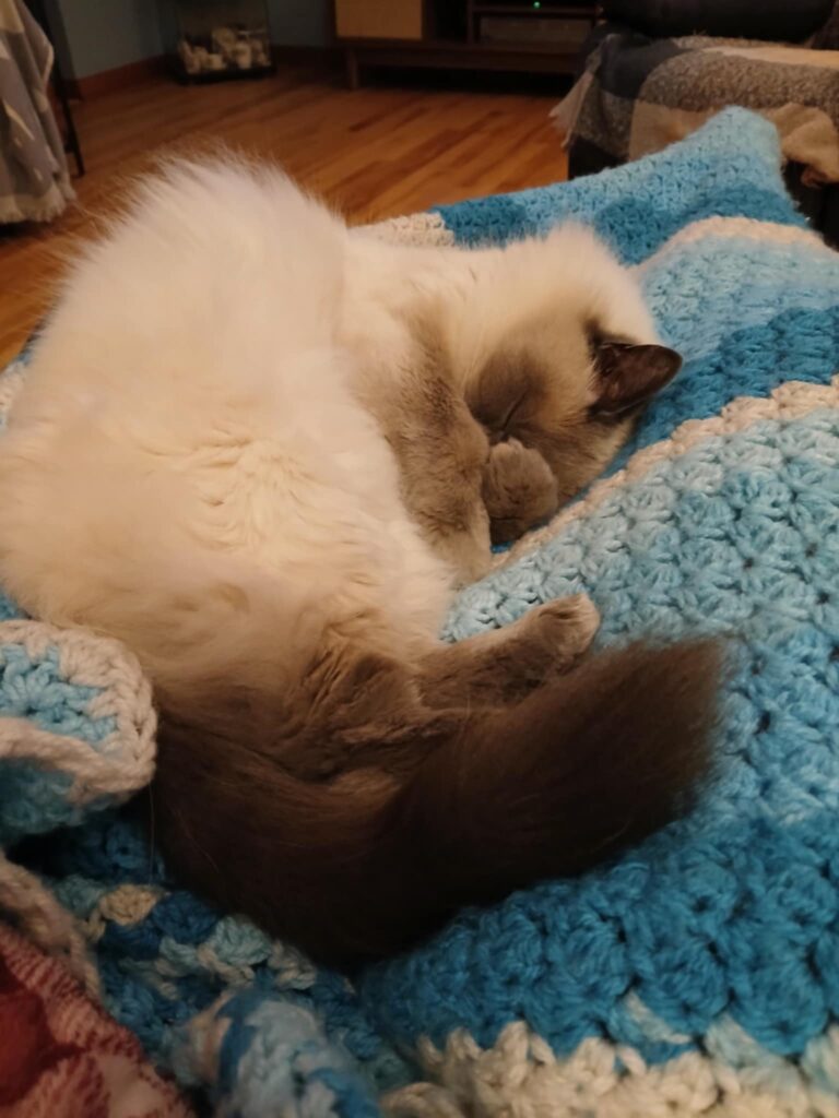 Nico is living his best life at the moment; more snuggles than he knows what to do with. I watch him, curled up in a ball, or stretched out, paws over his little face, pushed as close as he can get to me, warm and fuzzy, content and at peace.