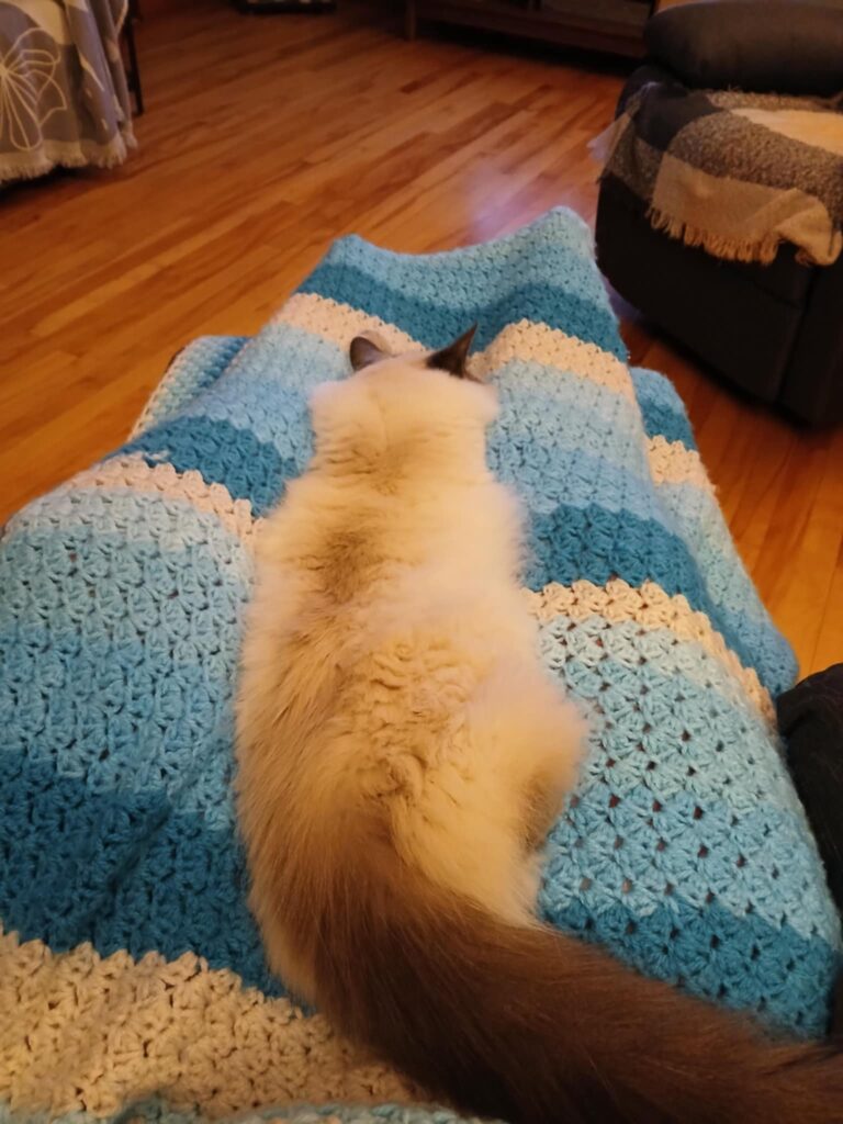 Long story short, I have been 100% down ever since. In bed, on the couch, in the recliner. Soup for breakfast, lunch and supper (or at least when I feel up to eating). All day pj’s. Peaked [pee-kid] – a word I grew up with – meaning pale and unwell (not only do I look peaked, I feel peaked, which is a whole other level). Nasty cough syrups and a variety of “flu” medications, none of which seem to be working well. 2 trips to Emergency – neither really helpful, and maybe even a bit traumatic. No work. Only Nico the kitty and I, reclining and dozing.